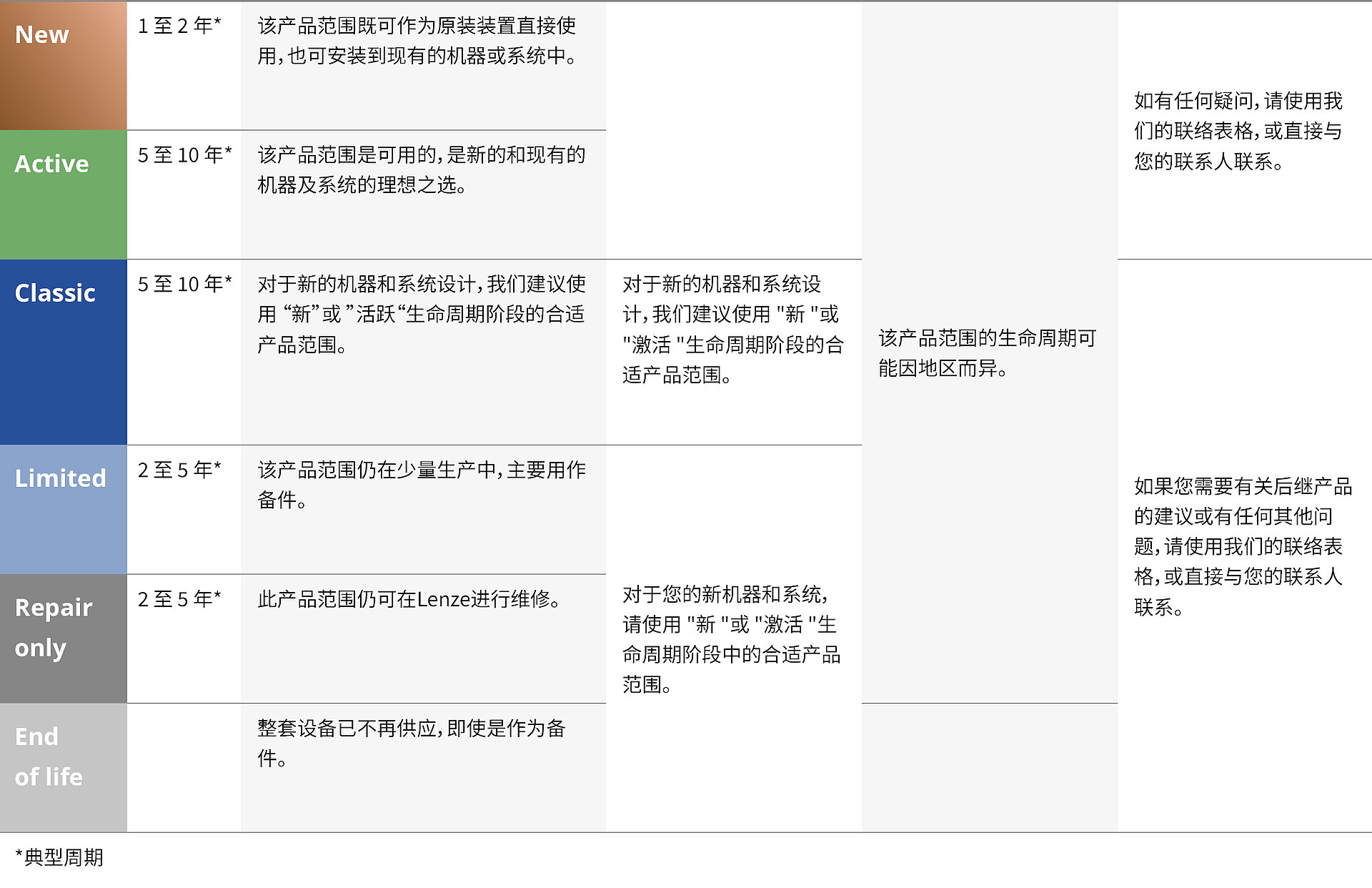 向后继产品进行过渡的可能性是产品生命周期管理的一部分。Lenze一贯的高标准服务和支持对于开发合适的解决方案至关重要。